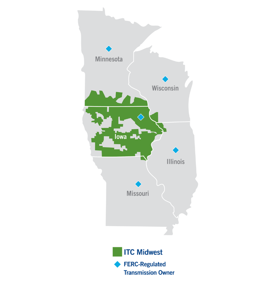 ITC Midwest operates more than 6,600 circuit miles of transmission lines in Iowa, Minnesota, Illinois, Missouri and Wisconsin. The company is headquartered in Cedar Rapids, Iowa, and maintains operating locations in Dubuque, Iowa City and Perry, Iowa; and Albert Lea and Lakefield, Minnesota.